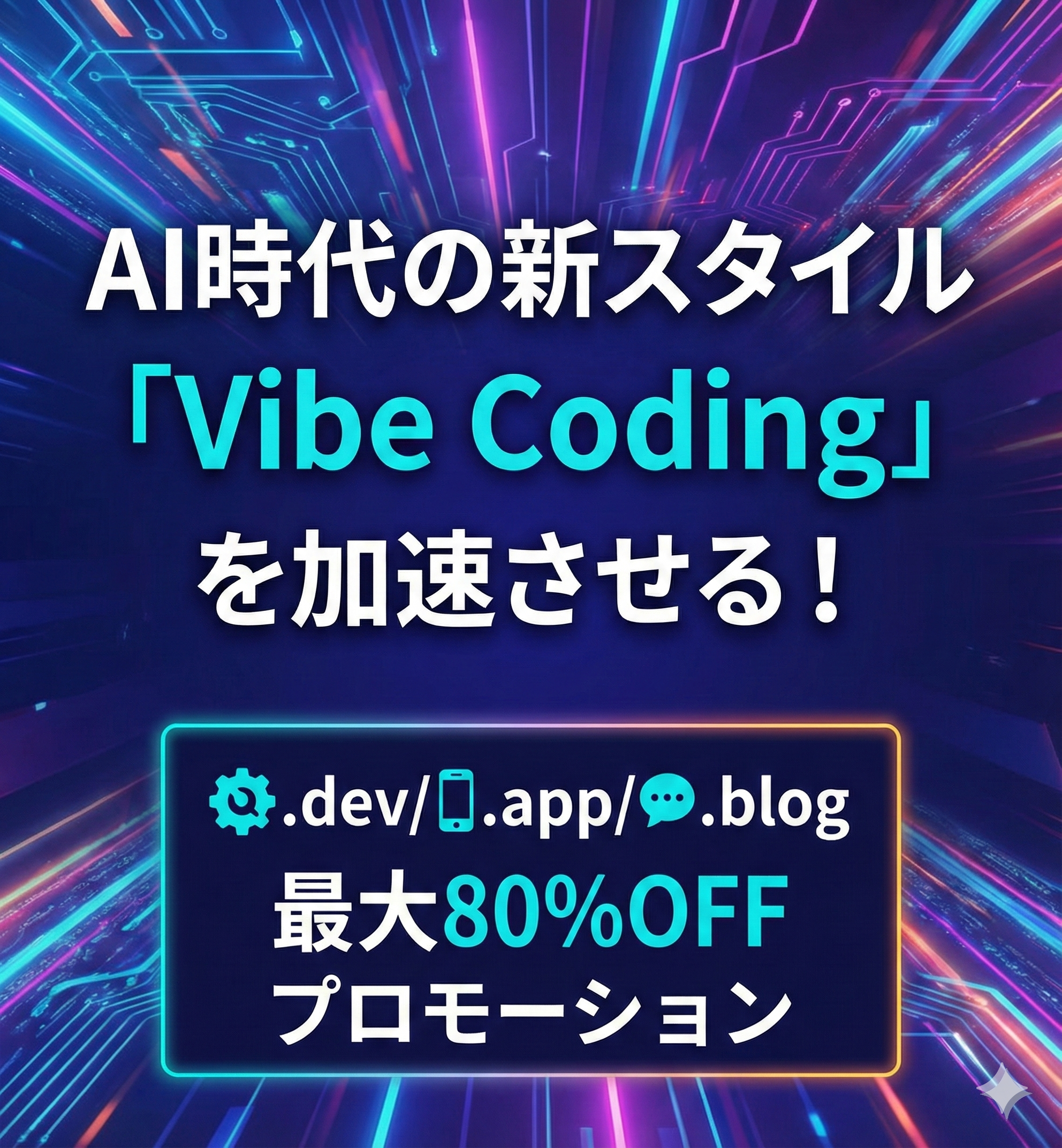 AI時代の新スタイル「Vibe Coding」を加速させる!.dev/.app/.blog 最大80%OFF